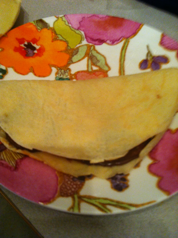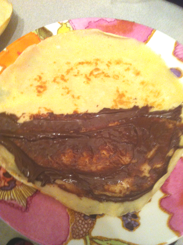Spread tbsp Nutella on half of crepe