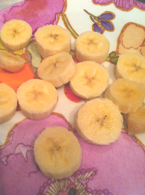 Cut bananas into thin slices.