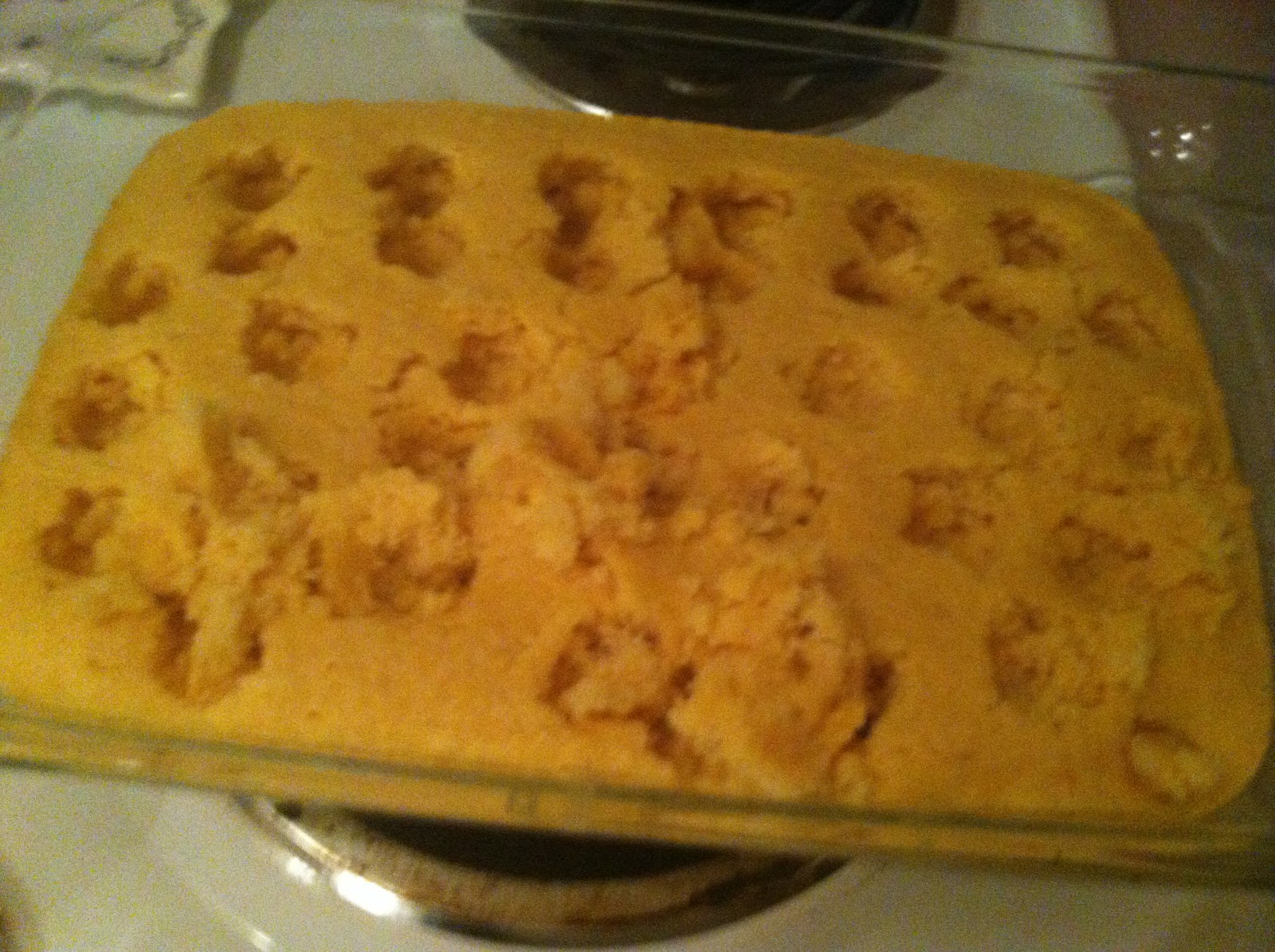 1. In a large bowl, pour your cake mix and get out any clumps of mix. Then slowly pour the soda into your mix while stirring. Keep stirring until you get out the lumps (your cake mix will end up looking like it normally would, had you added eggs and oil). Once fully mixed, spray your baking pan with Pam, then pour your batter into a 9×13 pan. I used a glass pan and it took me about 35 minutes of baking for my toothpick to come out clean. Make sure you don’t over bake!