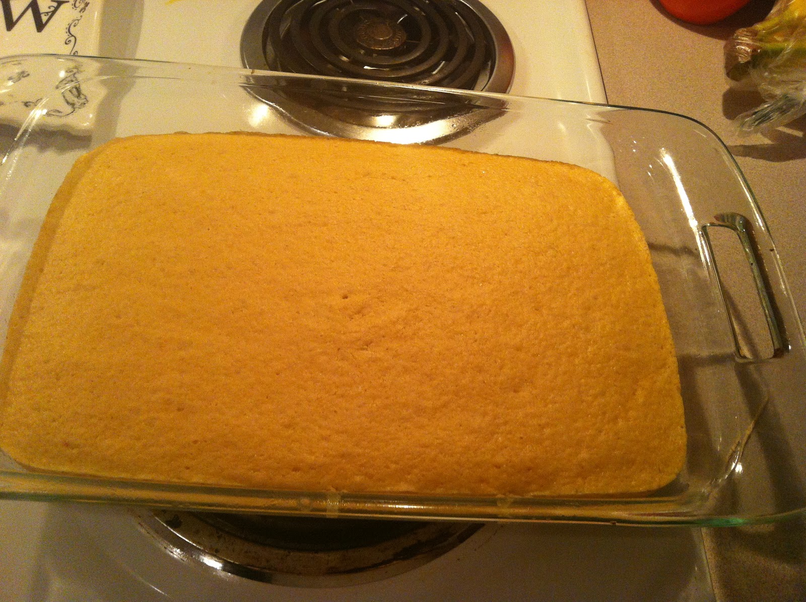 2. Take out your cake and let it cool for about 5 minutes. It should look pretty and golden like this: