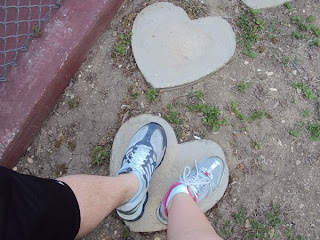I found a cute stepping stone and thought our feet would look cute on it.
